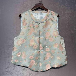 新中式国风真丝织锦提花马甲女2025秋季新款时尚百搭休闲马夹上衣