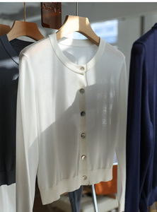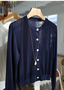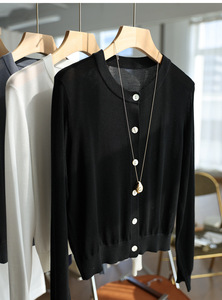 100兰精天丝!超大贝壳扣针织开衫薄款凉感短款圆领女夏新G060709