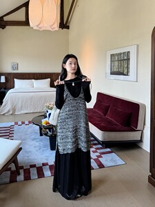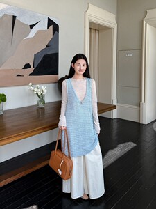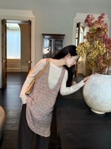 DIGM | 2025秋季极简高级感叠穿中长款U领针织背心裙毛衣女A8M026