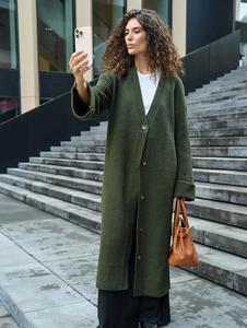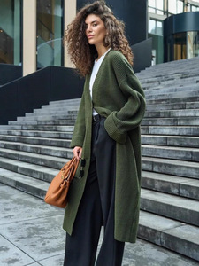 欧美跨境秋冬女装加长款开衫针织衫纯色休闲宽松外套毛衣亚马逊