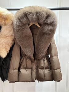 2025冬季东大门新款狐狸毛整皮大毛领羽绒服女短款抽绳连帽短款潮