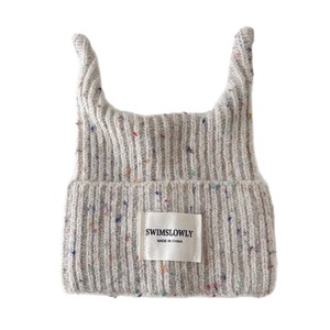 秋南 儿童帽子秋冬新款ins时尚牛角彩线针织帽男女宝宝保暖毛线帽