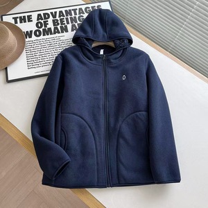 牛货素+情侣款冬装双面摇粒绒加厚保暖O标连帽羊羔毛短款外套女