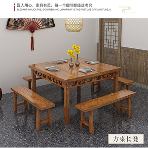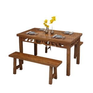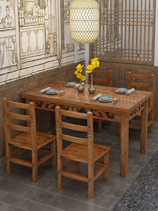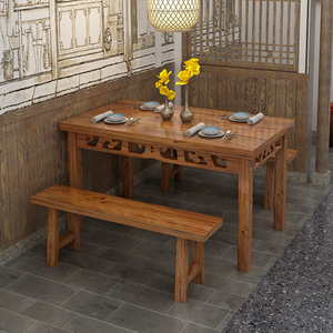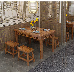烧烤早餐面馆饭店火锅桌椅组合实木餐桌椅餐桌食堂雕花小吃店碳化