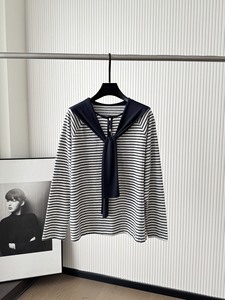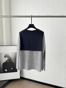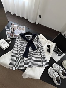 25秋季新款韩版休闲条纹减龄学院风叠搭条纹披肩长袖T恤0828a9