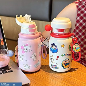 新款蜡笔小新保温杯女生高颜值吸管杯316不锈钢学生上学专用便携