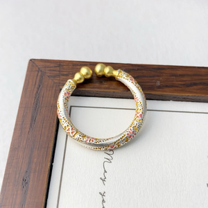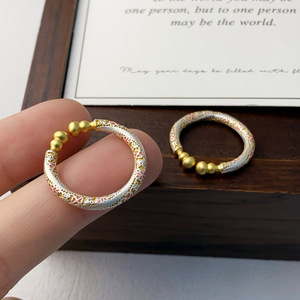 银佳银饰 足银999.9 描金珐琅樱花葫芦戒指 潮流 精品一件代发