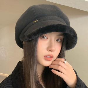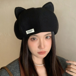 韩版甜美可爱猫耳帽百搭女款贝雷帽显瘦八角帽打卡拍照氛围感帽子