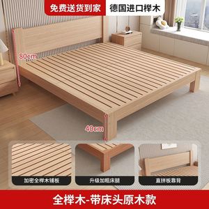 榉木实木床现代简约1.8米双人单人床1.5家用出租屋榻榻米简易床架
