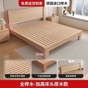 【整床全榉木】30高带床头原木无漆-出口品质