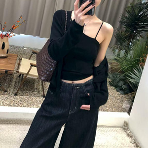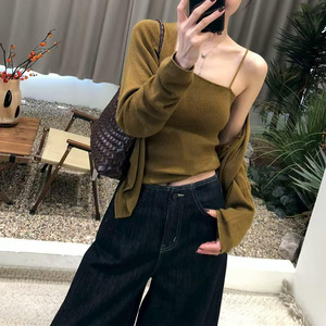 欧洲站韩系2025早秋气质百搭显瘦时尚气质长袖针织开衫吊带两件套