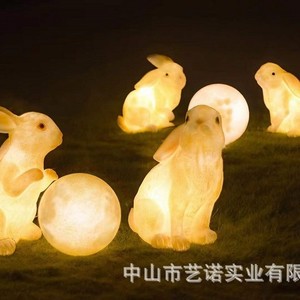 中秋兔子月亮组合发光树脂玻璃钢雕塑大型文旅景观园林兔子小品灯