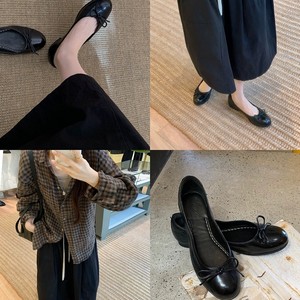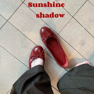 葡萄妈同款经典bi入!油蜡感软皮小圆头蝴蝶结浅口平底玛丽珍单鞋