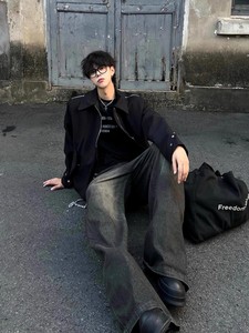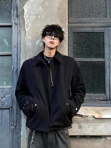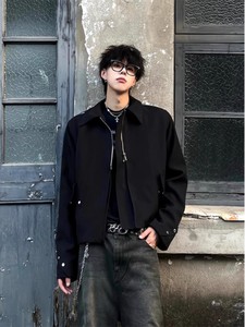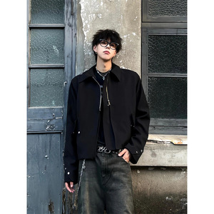 美式黑色外套男秋季新款正肩设计感小众高端痞帅时尚休闲简约夹克