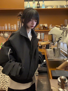 美式复古折棘翻领夹克男士新款设计感蜂窝工装外套解构短款棒球服