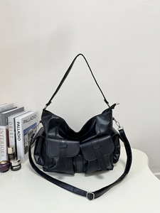 欧美复古多口袋单肩包2025新款高级质感大容量斜挎包休闲百搭大包
