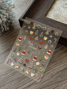 YITU蚁图浮雕圣诞饼干美甲贴纸圣诞节系列多彩背胶装饰贴纸YT6551