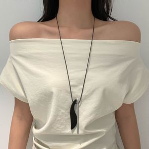 复古抽象金属条黑檀木项链轻奢小众设计高级感长款吊坠蜡绳毛衣链
