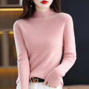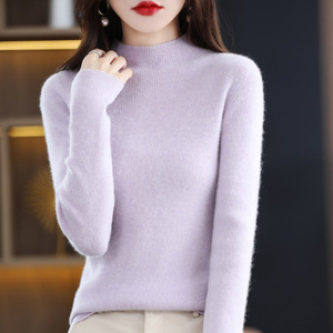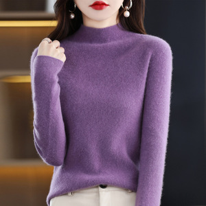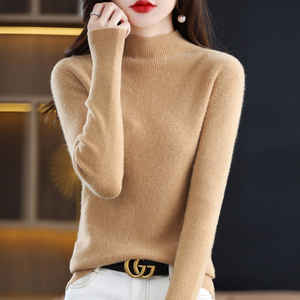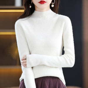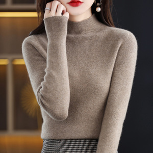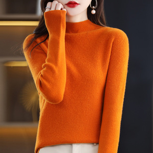 羊毛衫半高领一线成衣套头秋冬女装纯羊毛针织长袖纯色打底毛衣