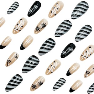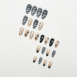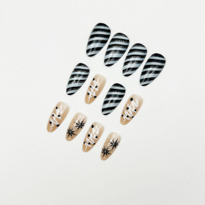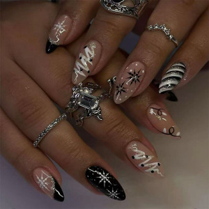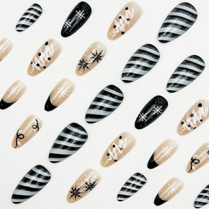 跨境热销圣诞节甲片黑白配色圣诞树雪花设计美甲贴片可拆卸假指甲