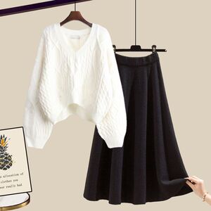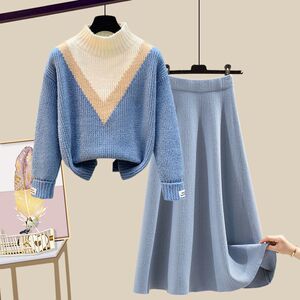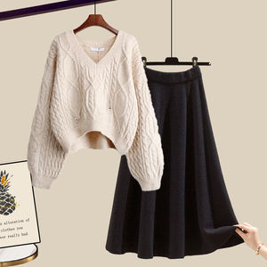 大码女装秋冬季套装女2025新款宽松圆领针织毛衣显瘦半身裙两件套