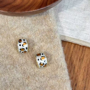 不规则奶白豹纹耳钉