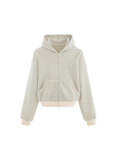 国潮牌杏色条纹连帽拉链外套女春秋新款学院风短款小个子开衫卫衣