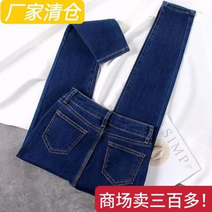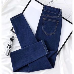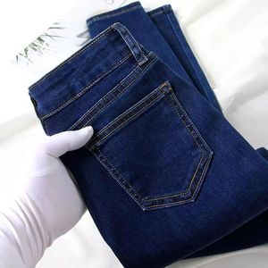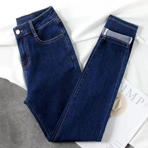 春秋深蓝色弹力高腰牛仔裤女2025年新款百搭显瘦紧身铅笔小脚裤子