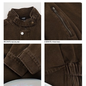 美式复古咖啡色工装牛仔外套男秋季机车风宽松显瘦短款立领夹克衫