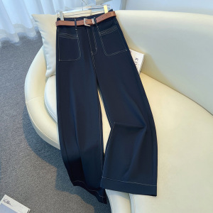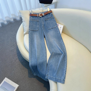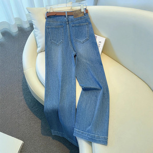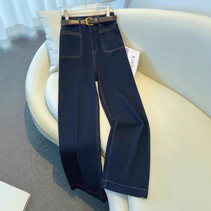 复古蓝高腰直筒牛仔裤女2025秋季新款宽松显瘦阔腿裤百搭窄版裤子