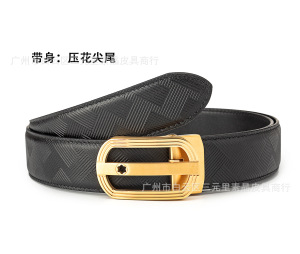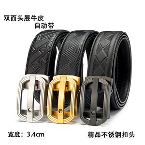 不锈钢宝龙自动扣皮带进口头层牛皮压花男士真皮商务3.4潮流腰带