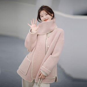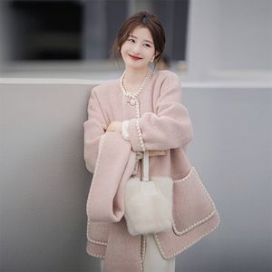 粉色小香风双面羊毛呢外套大衣温柔风韩系高级感冬装女2025新款