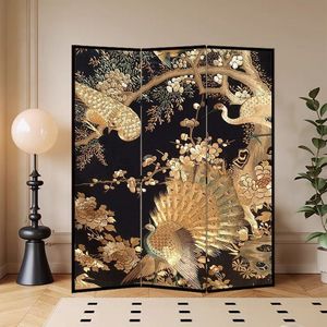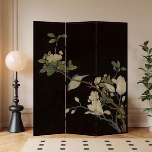 法式中古花鸟屏风隔断客厅现代简约可移动办公室玄关卧室遮挡折屏