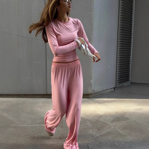2025欧美跨境春季新款nv 时尚圆领修身长袖上衣长裤舒适亲肤两件