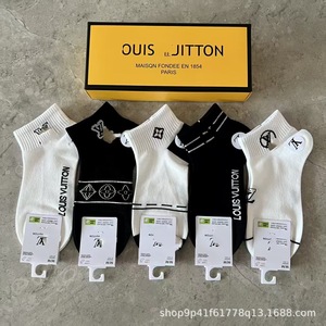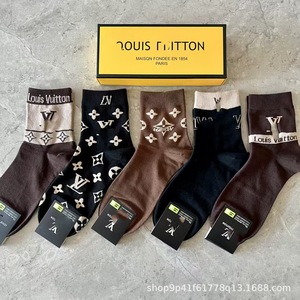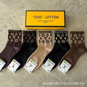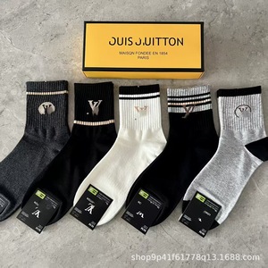 新品跨境驴家男士中筒棉袜女士一体机无骨情侣5双装盒装袜子批发