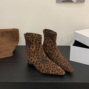8855-2~粗跟法式气质尖头豹纹短靴女靴子2025年秋季新款