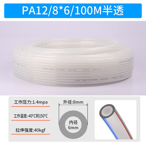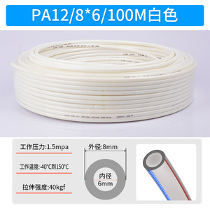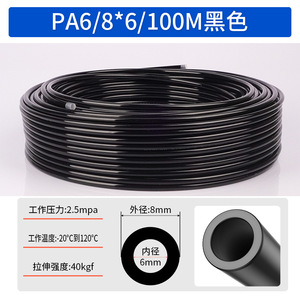 气管PA6高压耐高/低温尼龙软管,黑/白色PA12气管,8*5气动尼龙管