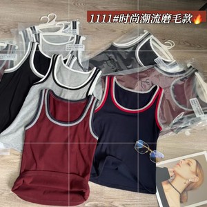 惠芝欣早秋1111时尚潮流磨毛款羊毛带胸垫圆领无袖背心吊带针织