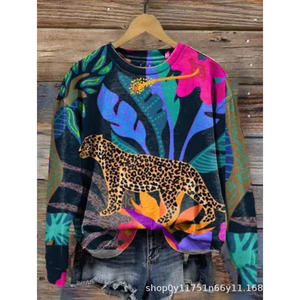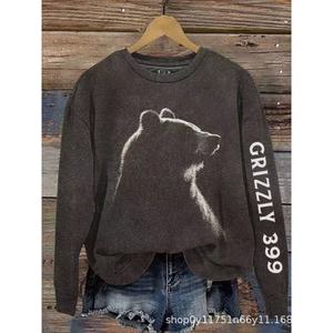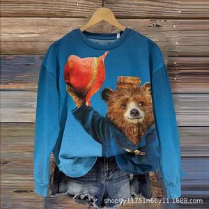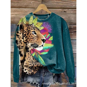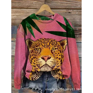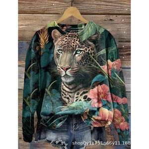 亚马逊欧美2025跨境货源3D动物图案印花长袖女士圆领卫衣秋冬女