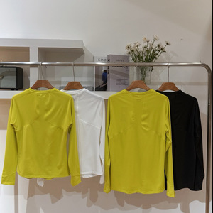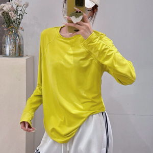 0828x7~户外运动简约宽松透气软硅胶印花情侣款速干圆领长袖T恤