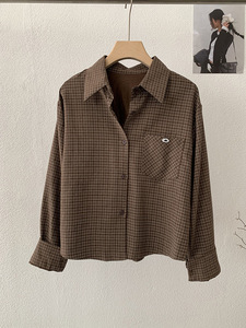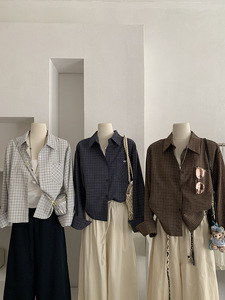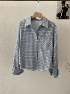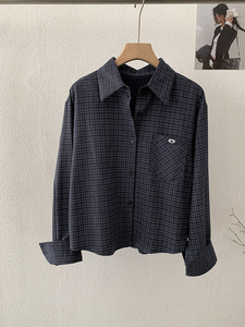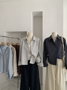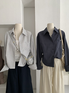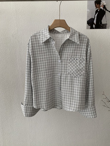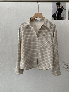 欧玛莱 翻领单排扣小格子长袖衬衫2025秋季休闲百搭女装上衣 4615