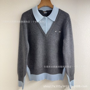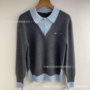 高版本现货高品质MU家2025新款假两件针织毛衣宽松版型男女同款