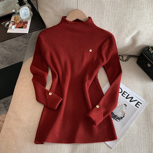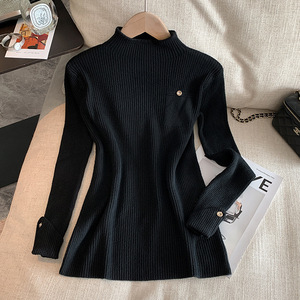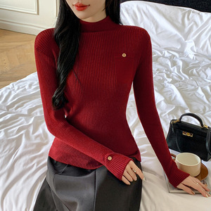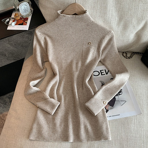 半高领长袖针织打底衫女早秋装2025新款别致修身显瘦气质上衣洋气
