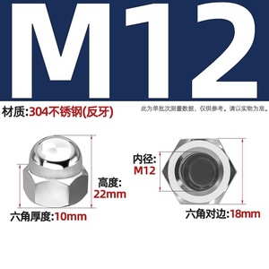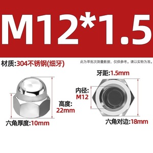 304不锈钢细牙盖型形螺母细牙盖帽M10M12M14M16M18M20*1*1.25*1.5
