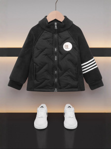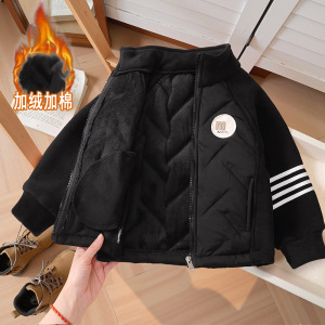 儿童黑色棒球服秋冬装2025新款男童夹棉加厚外套冬季百搭校服神器