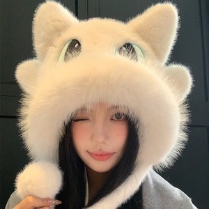 环球影城可爱无牙仔毛绒帽子女2024年冬季情侣款保暖显脸小雷锋帽
