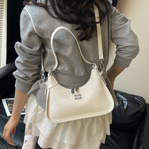 跨境新款蛇纹腋下包M欧美潮流 小众高级质感新月包单肩斜挎小方包