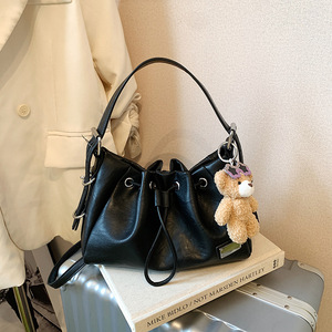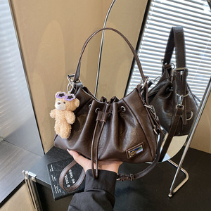 韩版小众抽绳褶皱手提包包女2025早秋复古百搭休闲通勤单肩斜挎包