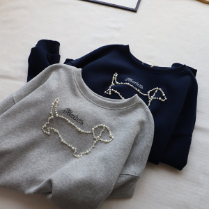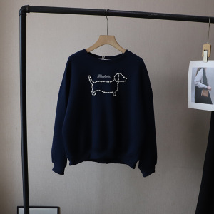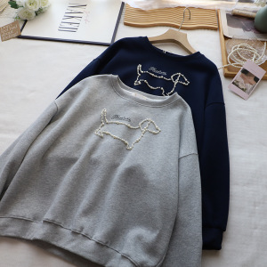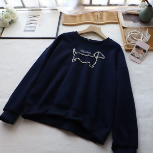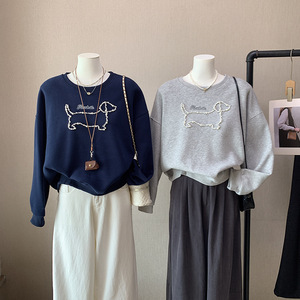 [比正]2025秋冬新款韩版时尚圆领小狗钉珠宽松显瘦百搭卫衣女4881