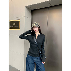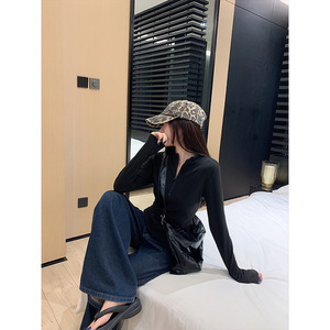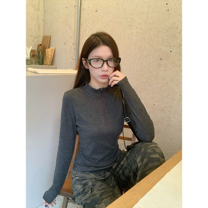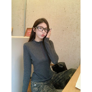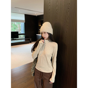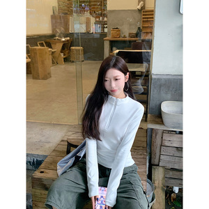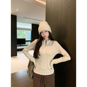 魔西女王ins秋冬高弹加绒半高领拉链上衣骨打底衫女装修身长袖T恤